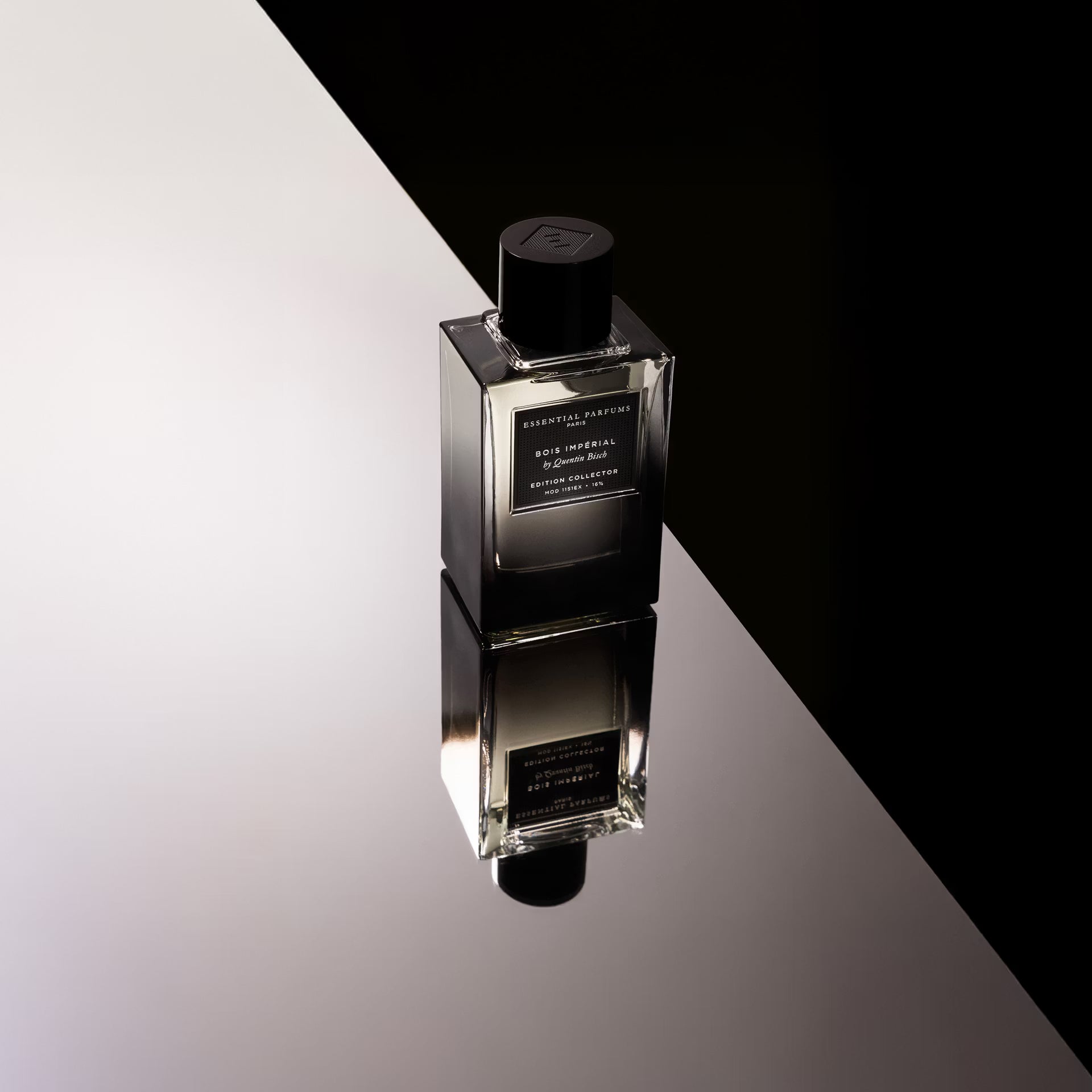 Un iris amaderado como una oda a los aterciopelados pétalos de la flor. Con la suave luminosidad de la pimienta rosa y el buchú, despliega sus facetas verdes, impregnadas de gálbano. Maderas ambaradas y cremosas lo envuelven en una caricia infinitamente carnal.